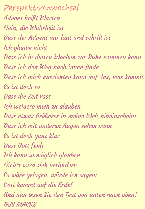 Unter diesem Titel steht der diesjährige Advent mit den Veranstaltungen und Gottesdiensten.
