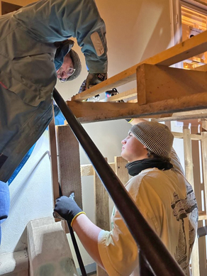 und noch mehr Holz gleich neben Pater Muthukkattil Rejis Eingang. Keine Angst, es wurde nichts beschädigt und auch nichts entfernt, sondern