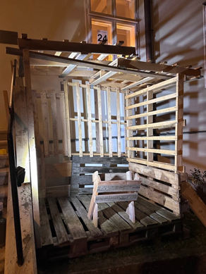 der Stall für das Krippenspiel gebaut. „Langsam wird es größer als meine Wohnung”, war Pater Rejis Kommentar zur Größe der diesjährigen