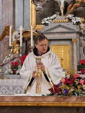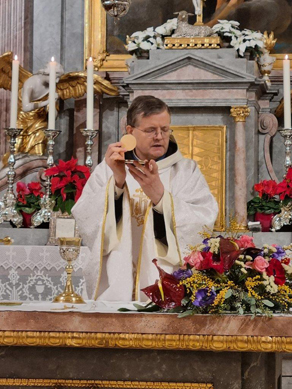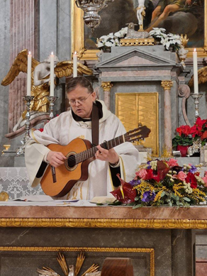 Immer wieder sind Priester zu Gast in Neustift, um mit der Gemeinde Hl. Messe zu feiern. So geschehen auch am Sonntag, den 2. Februar, dem Gedenktag des Hl. Blasius. Pater Norbert Maria Kuschel OCD, vom Karmel in der Silbergasse, baute so manch erheiternde Begebenheit aus seinem Priesterleben in die Predigt ein und ezählte unter anderem von seiner Priesterweihe. Am Ende der Messe griff er zur Gitarre und sang dazu ein Lied seines Vaters zum offiziellen liturgischen Ende der Weihnachtszeit. Danach spendete er den an diesem Tag üblichen Blasiussegen, ehe es hinüber ins Pfarrheim zum Pfarrkaffee ging.