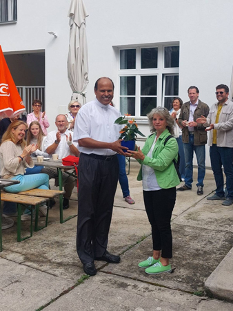 Zehn Jahre lang war Beate Wurm bei uns in der Pfarre tätig und hat sich um die Kirche, das Pfarrheim und den Pfarrgarten gekümmert. Sie hat geputzt, aufgewaschen, Geschirr abgewaschen, Tische und Sessel geschleppt und vieles mehr. Ein besonderes Anliegen war ihr die Pflege der Blumen im Pfarrgarten, insbesondere der Pflege der Rosenstöcke vor dem Pfarrhof in der Eyblergasse. Diese gediehen ob ihrer Pflege besonders prächtig.