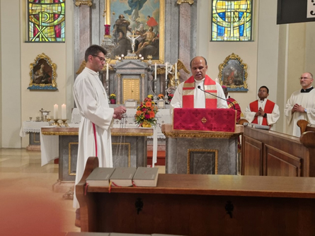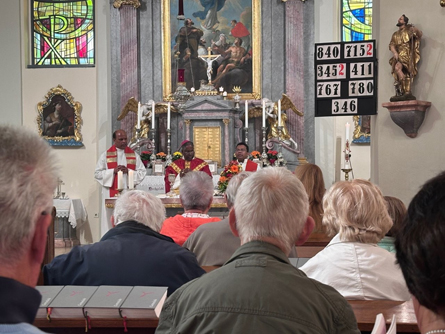 Bischof Sebastian, der amtierende Bischof der Diözese Vijayapuram in Kottayam im Bundesstaat Kerala in Südindien, besuchte an diesem Wochenende unsere Pfarre und feierte am Pfingstmontag die Heilige Messe mit der Gemeinde. Pater Reji erzählte in seiner Begrüßungsrede, dass ihm Bischof Sebastian im Jahr 2007 die Diakonenweihe im Priesterseminar in Ettumannoor spendete – ein bedeutender Moment in P. Rejis geistlichem Leben. Er selbst durfte dann von 2010 bis 2014 in dieser Diözese als Pfarrer in der Pfarre St. Antony´s Church, K. Chappath wirken, wodurch ihn auch eine enge persönliche Beziehung mit Bischof Sebastian verbindet. Die Missionsdiözese Vijayapuram erstreckt sich geografisch über fünf Bezirke in Kerala und ist daher sehr weitläufig, die Menschen arbeiten größtenteils in Teeplantagen oder gehen einfachen Berufen nach.