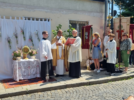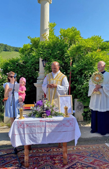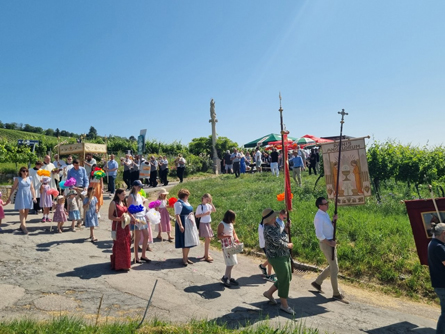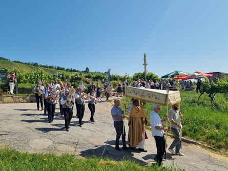 Traditionell am Sonntag nach Fronleichnam versammelte sich die Gemeinde zu einem besonderen Gottesdienst in den malerischen Weinbergen bei der