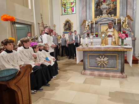 Nach dem Umgang lud Familie Wolff Zelebranten und Musikkapelle in den schattigen Hof der Buschenschank zu einem köstlichen Mahl und erfrischenden