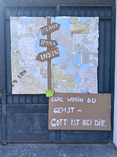 Passend zur Urlaubszeit lenkt eine neue Garagentor-Installation die Blicke auf sich. Sie beruht auf den Worten von Moses im Alten Testament.