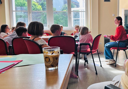 Die Autorin Sandra Zehentner stellte ihr Kurzgeschichtenbuch „Erfinderkinder” vor und erzählte den Jungleser*innen auch darüber wie man