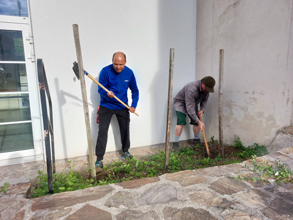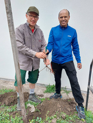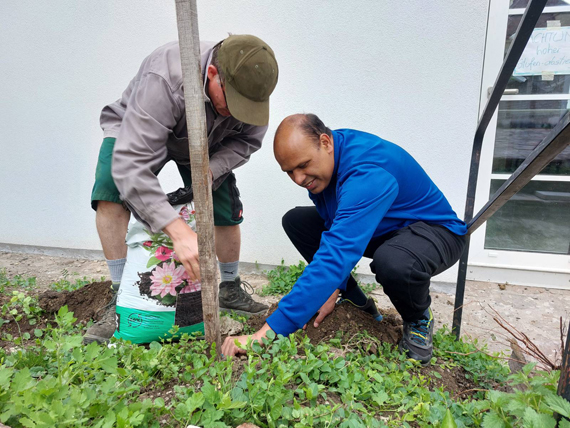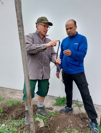 Bevor sich Pater Reji zur Sonntagsmesse in den Weingarten Jesu begab, ging es früh morgens in den Pfarrweingarten. Gemeinsam mit Hauer Erich Ferschel wurde geschuftet, um Pflanzlöcher für neue Weinstöcke zu graben. Diese sollen später einmal nicht nur reiche Frucht bringen, sondern an heißen Sommertagen auch ein wenig Schatten spenden und so im Hof des Pfarrhofes für ein angenehmes Klima sorgen.