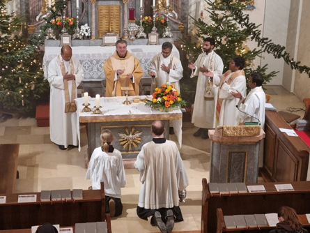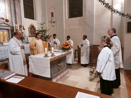 damit eine wertvolle geistliche Nahrung. Am Altar konzelebrierten außerdem vier weitere Priester: P. Manikumar OSFS, P. Robins aus dem Karmelitenkloster