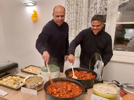 Im Anschluss an den Gottesdienst waren alle zu einer indischen Agape eingeladen. Zahlreiche köstliche Spezialitäten, liebevoll von Pater Reji zubereitet,
